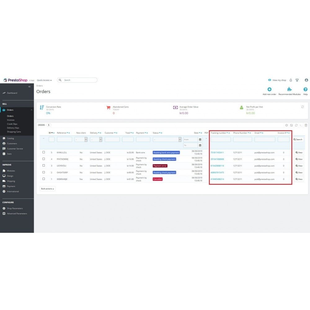 MathiasReker Posted July 5, 2019 Share Posted July 5, 2019 (edited) Overview This module makes it easy to lookup a customer by order or address. This is a must-have module. Link to module: https://addons.prestashop.com/en/order-management/39583-lookup-by-tracking-number-phone-invoice-email-etc.html Works with Prestashop 1.6.0.4 - 1.7.6.0+ Features Search / sort by tracking number in "Orders" Search / sort by phone in "Orders" Search / sort by mobile in "Orders" Search / sort by email in "Orders" Search / sort by zip/postal code in "Orders" Search / sort by invoice in "Orders" Search / sort by phone in "Addresses" Search / sort by mobile in "Addresses" Edited July 5, 2019 by MathiasReker (see edit history) Link to comment Share on other sites More sharing options...