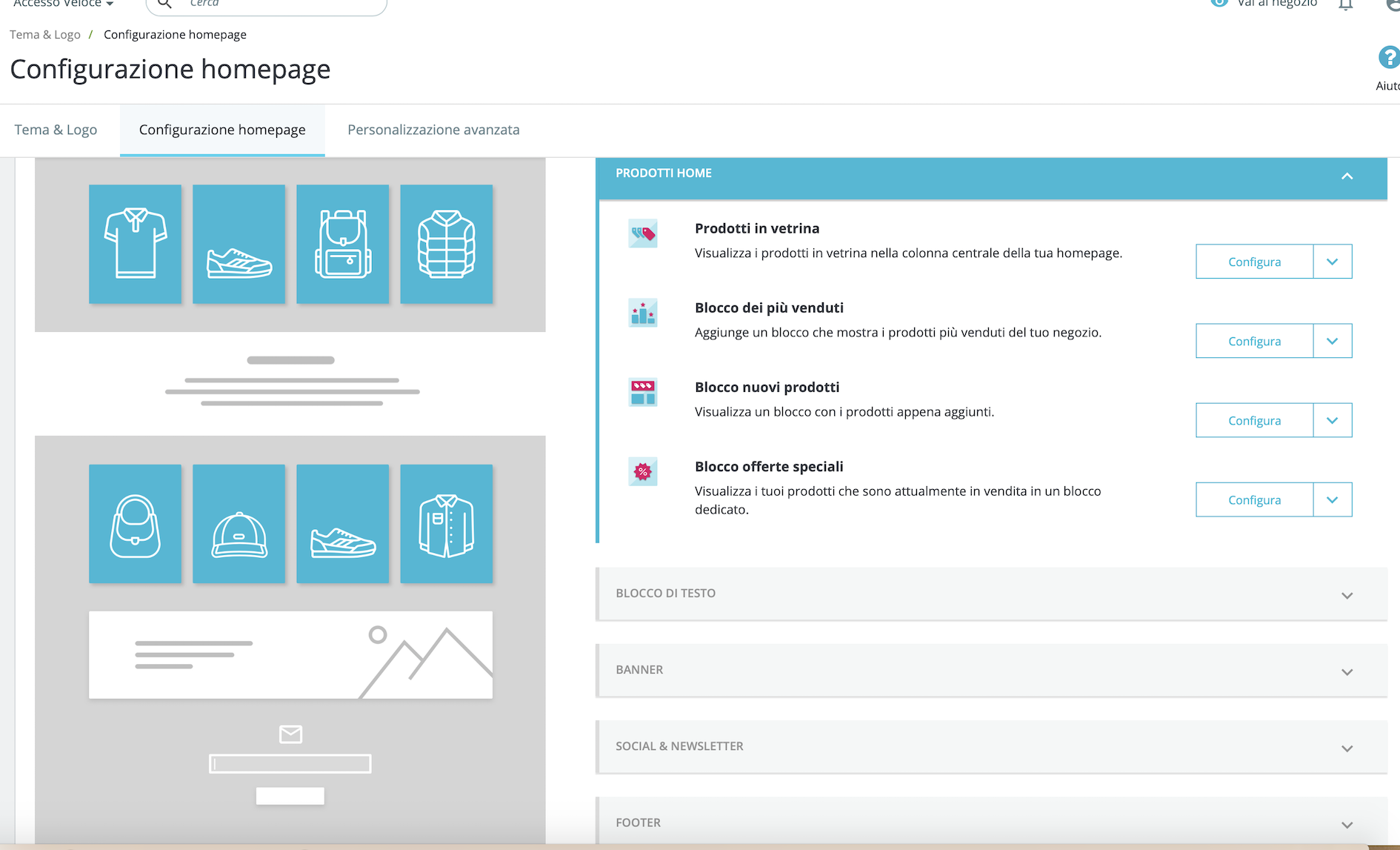 Su  "CONFIGURAZIONE HOMEPAGE" >> "PRODOTTI HOME" vedo: