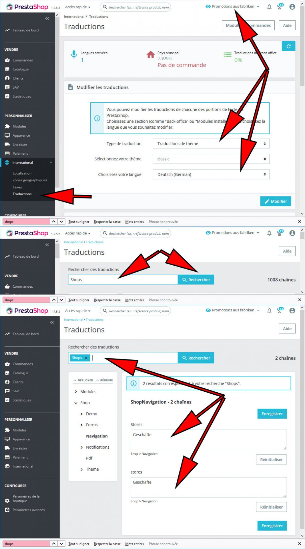 SOS problème de traduction shops thème classic impossible