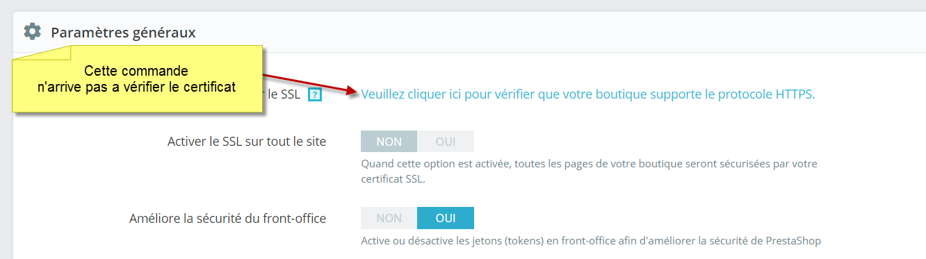 pprieu Posted July 8, 2019 Share Posted July 8, 2019 Bonjour à tous Je rencontre un problème avec le passage en HTTPS, je suis hébergé chez hébergeur français : online. J'ai demandé la mise en place d'un certificat ssl, ce qui a été fait. Ils ont créé un sous domaine qui pointe en https sur un dossier SSL. Le support me dit que c'est ok je peux activer HTTPS sur mon site. Malgré cela, lorsque je fait le test de https dans le back office, le système ne détecte pas le certificat et ne m’autorise pas a passer en https. est ce que quelqu'un a déjà rencontré ce problème? Merci a vous philippe Link to comment Share on other sites More sharing options...