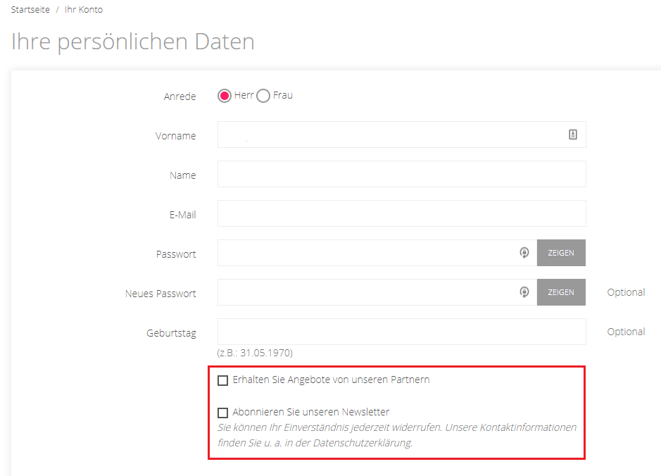 spacecube Posted July 9, 2019 Share Posted July 9, 2019 (edited) Guten Tag an alle, Ich habe nun nach 3 Stunden Suchen aufgegeben und deshalb hier mal nen Post gemacht. Falls das hier Falsch ist oder die Frage bereits beantwortet wurde, bitte ich um entschuldigung. Ich habe nichts gefunden was mir nur annähernd hilft. Wenn ein Kunde sich einloggt und sein Profil anschaut, sieht er ein Formular mit seinen Daten. Darunter gibt es zwei Checkboxen für die Anmeldung zum Newsletter und Partnerangeboten. WO wann ich die Texte für diese 2 Checkboxen anpassen? (evtl., auch die eine oder andere checkbox entfernen). In der Übersetzung habe ich dies nirgends gefunden, wobei ich denke dass es irgendwo sein muss. Wenn ich die Sprache von Deutsch auf Englisch ändere, ändert sich der text dieser checkboxen ebenfalls korrekt. Ich arbeite mit PrestaShop 1.7.5.0. Das Template was ich verwende ist, denke ich, nicht das Problem, denn mit dem classic Template ist es exakt das selbe. Wäre cool wenn mir jemand helfen könnte. Edited July 11, 2019 by spacecube problem gelöst (see edit history) Link to comment Share on other sites More sharing options...
