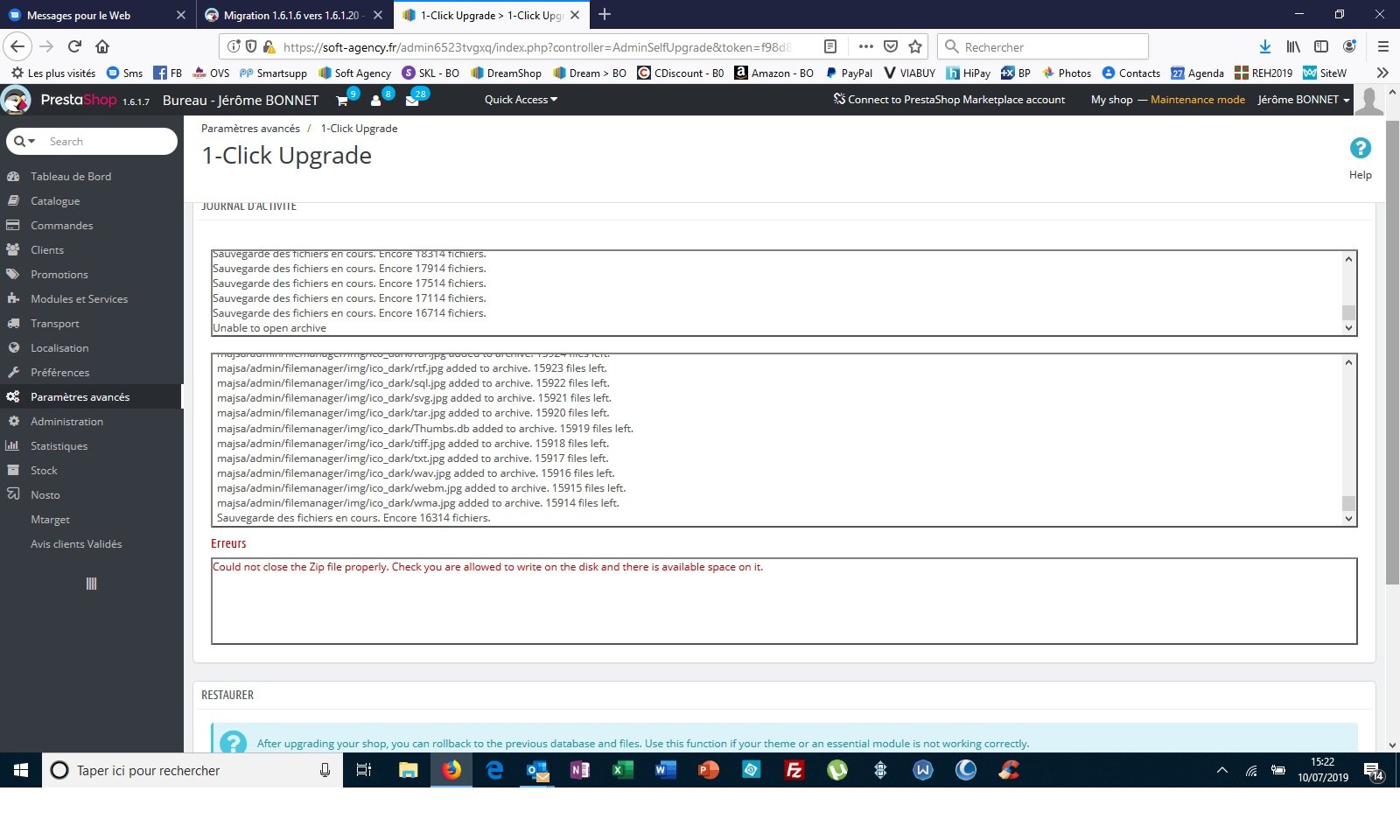JBSii Posted July 10, 2019 Author Share Posted July 10, 2019 Voilà ce que j'ai en utilisant la fonction autoupgrade. Je suis hébergé chez 1&1. Link to comment Share on other sites More sharing options...
