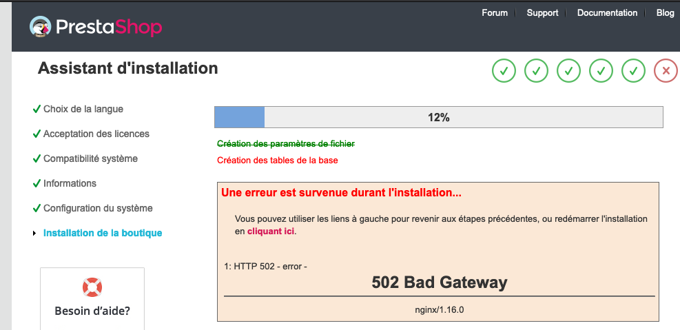 moutardeforte Posted July 11, 2019 Share Posted July 11, 2019 Bonjour, Je me suis lancé dans ma premiere installation de prestashop sur mon serveur et voici mon probleme... Je ne sais que faire pour le résoudre... Si quelqu'un peut eclairer mon chemin je l'en remercie ! merci:-) Link to comment Share on other sites More sharing options...