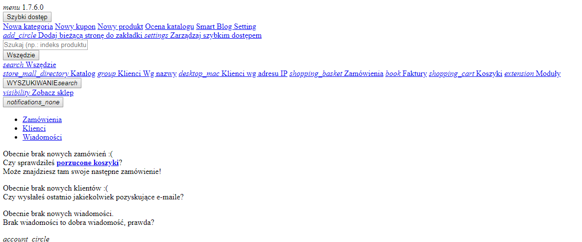 Po aktualizacji z 1.7.5.2 do 1.7.6 rozsypują mi się niektóre strony w Back Office. Strona główna, Zamówienia, Koszyki Zakupowe, Strony modułów (np Allegro) wyglądają normalnie.