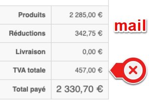 Johan06 Posted July 16, 2019 Share Posted July 16, 2019 Bonjour, Sur prestashop 1.7.5.0 il y aurait un problème sur le mail de confirmation lorsqu'il y a une réduction. En gros, le calcul de la TVA ne prend pas en compte la réduction. Hors sur le PDF de la facture tout est ok. Voir illustration ci-joint. Savez-vous comment corriger ce bug ? Link to comment Share on other sites More sharing options...
