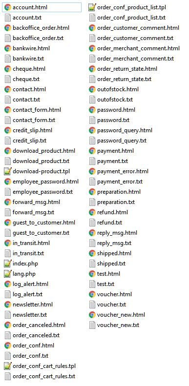 2- J'ai créé un nouvel état pour livraison partielle, pour les commandes livrées partiellement donc, en dupliquant un état existant (txt et html). Mais ce modèle de mail est le seul non personnalisé par le Template de mails que j'utilise. Doit-il être déclaré ailleurs après la création des fichiers txt et html?