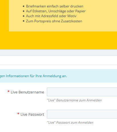 Wuschel Posted July 19, 2019 Share Posted July 19, 2019 Ja, du musst dich bei der Portokasse der Deutschen Post registrieren und dort auch ein Guthaben hinterlegen. Diesen Benutzernamen und Passwort trägst du dann hier ein. Nach jedem Ausdruck wird dir dann automatisch dein Restguthaben übermittelt. Übrigens ist ein Etikettendrucker hier wirklich von Vorteil. Link to comment Share on other sites More sharing options...