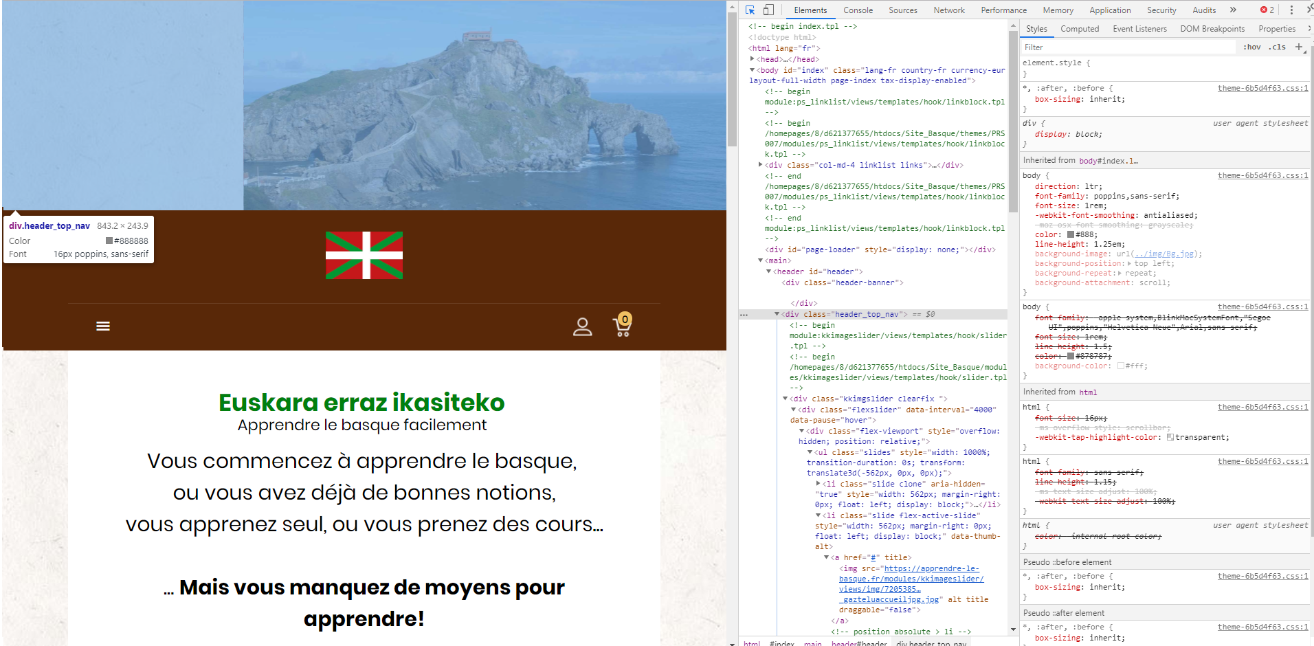 peio Posted July 22, 2019 Author Share Posted July 22, 2019 (edited) Il y a 3 heures, LEOBT a dit : Avec plaisir Pas si simple que ça. Je suis allé sur GOogle Inspector, mais je n'arrive pas à localiser la ligne Css correspondant à l'interligne des pages du menu. Il y a des Webkit, des Inherits etc... Un petit conseil? Merci Mon site: https://apprendre-le-basque.fr/ Edited July 22, 2019 by peio (see edit history) Link to comment Share on other sites More sharing options...