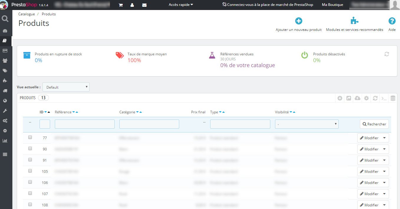 groslapin Posted July 22, 2019 Share Posted July 22, 2019 Bonjour à tous, J'ai un problème dans le BO, dans catalogue / produits, je n'ai pas la barre horizontale dans laquelle il y a "Filtrer par catégorie" qui devrait se trouver au dessus de la liste des produits. Du coup il m'est impossible de trier mes produits Est ce que le fait que je soit en multiboutique? ou j'ai fait une mauvaise manip? Prestashop 1.6.1.4 Cordialement, Link to comment Share on other sites More sharing options...