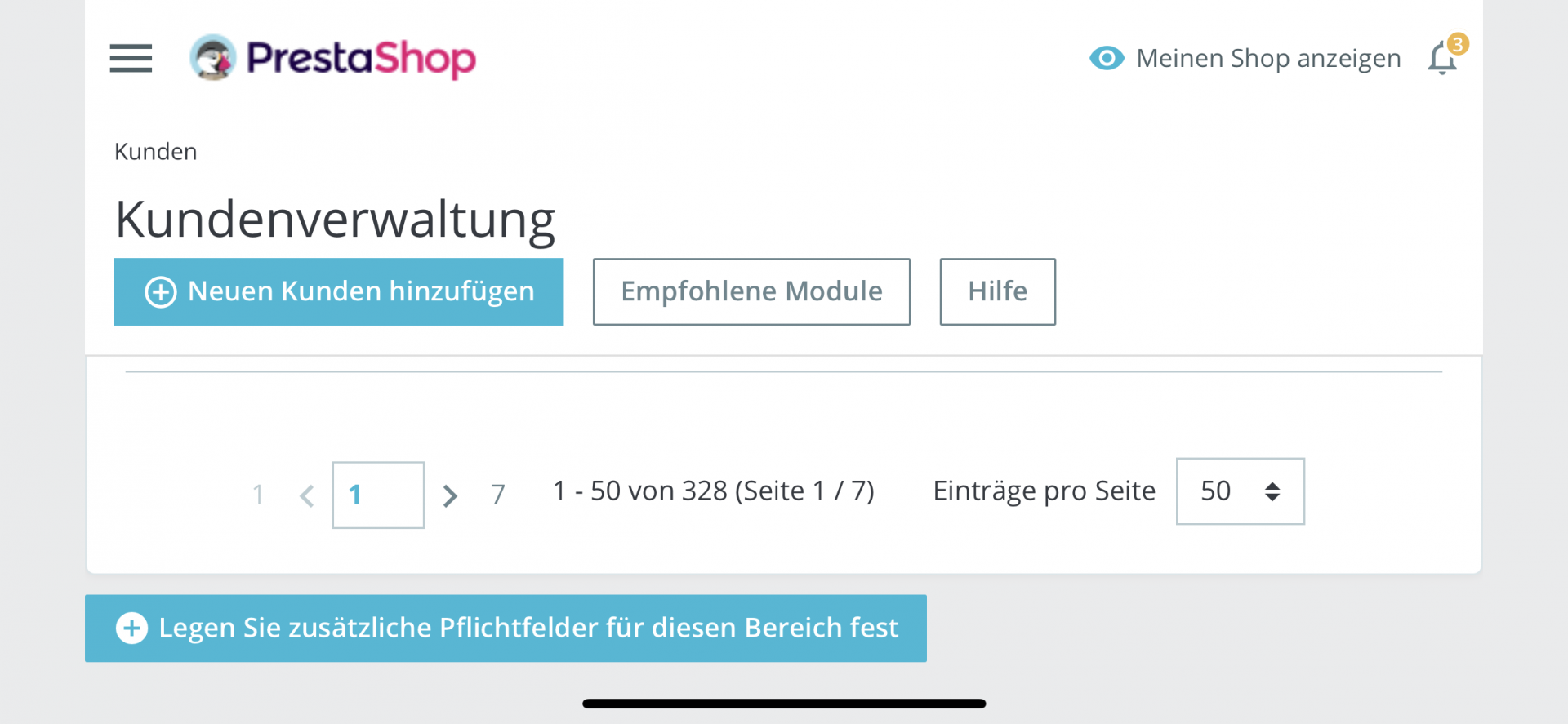 Norman2019 Posted July 22, 2019 Author Share Posted July 22, 2019 Kein Eintrag in Customer->optin at line 1004 in file classes/ObjectModel.php 999. } 1000. 1001. $message = $this->validateField($field, $this->$field); 1002. if ($message !== true) { 1003. if ($die) { 1004. throw new PrestaShopException($message); 1005. } 1006. 1007. return $error_return ? $message : false; 1008. } 1009. } ObjectModelCore->validateFields - [line 292 - classes/ObjectModel.php] ObjectModelCore->getFields - [line 561 - classes/ObjectModel.php] ObjectModelCore->add - [line 262 - classes/Customer.php] - [2 Arguments] CustomerCore->add - [line 516 - classes/ObjectModel.php] - [2 Arguments] ObjectModelCore->save - [line 195 - classes/form/CustomerPersister.php] CustomerPersisterCore->create - [line 59 - classes/form/CustomerPersister.php] - [2 Arguments] CustomerPersisterCore->save - [line 196 - classes/form/CustomerForm.php] - [4 Arguments] CustomerFormCore->submit - [line 60 - controllers/front/AuthController.php] AuthControllerCore->initContent - [line 291 - classes/controller/Controller.php] ControllerCore->run - [line 515 - classes/Dispatcher.php] DispatcherCore->dispatch - [line 28 - index.php] Link to comment Share on other sites More sharing options...