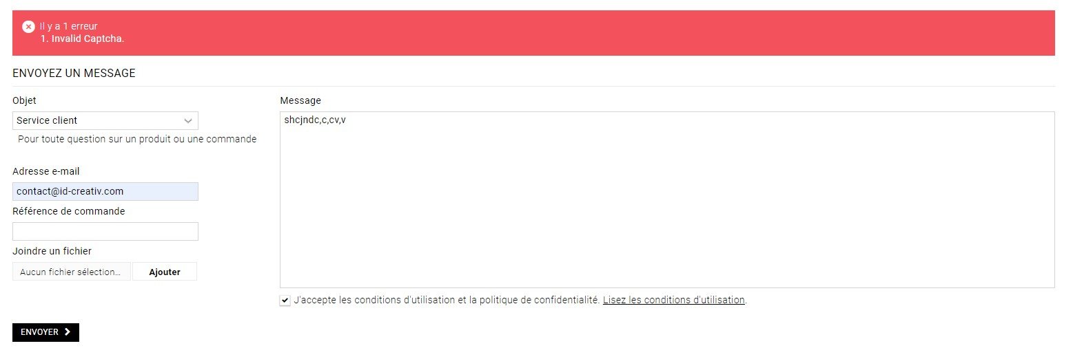 SK3uD Posted July 24, 2019 Share Posted July 24, 2019 Bonjour, je suis sur prestashop 1.6.1.23, template warehouse 3.8.7 nouvelle erreur sur une boutique au niveau de la page contact. Or, il n'y a pas de captcha installé. Les clients peuvent contacter le SAV par le biais de leur commande mais pas par le formulaire de la page contact. Vous avez une idée ? Link to comment Share on other sites More sharing options...