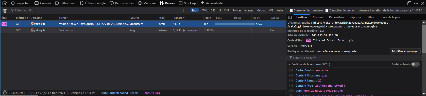 Beat67 Posted July 29, 2019 Share Posted July 29, 2019 Bonjour à tous, J'ai un problème d'affichage dans le back-office de Prestashop 1.7.2.2 lorsque je veux ajouter un produits. Je clique sur Catalogue/Produits et je n'ai qu'une page blanche, aucun affichage. Si je passe en mode Debug, pas de problème, cette page s'affiche correctement. Ce bug est arrivé subitement, sans avoir amener de modification. J'utilise le thème 01Response V 1.5.2 Je ne sais pas si ça peut aider mais j'ai joint une capture du moniteur réseau de firefox. Merci d'avance pour votre aide. Eric Link to comment Share on other sites More sharing options...