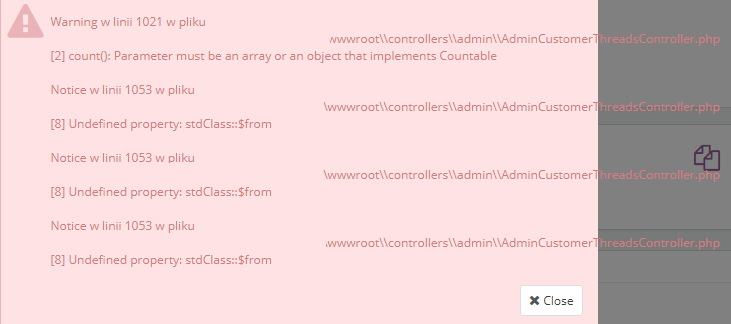 mam problem, wchodząc w obsługę zamówień wyskakuje mi błąd jak w załączniku.