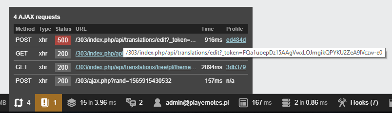 Masocrate Posted August 16, 2019 Share Posted August 16, 2019 (edited) For some reason i can't save any of translations, after i click "save" nothing happens and there's error in console coming up: translations.bundle.js?1.7.5.2:185 POST http://mypage.com/303/index.php/api/translations/edit?_token=FQa1uoepDz15AAgVwxLOJmgikQPYKU2ZeA9lVczw-e0 500 (Internal Server Error) translations.bundle.js?1.7.5.2:121 Uncaught (in promise) SyntaxError: Unexpected token < in JSON at position 0 at JSON.parse (<anonymous>) at translations.bundle.js?1.7.5.2:121 it comes from "new-theme" in admin themes folder. PS 1.7.5.2 PHP 7.1 Debug info in attachment. - Two active languages(polish and english) It's brand new installation from 1.7.5.2(it hasn't been updated via 1-clik upgrade or anything). Any idea how to fix it? Edited August 16, 2019 by Masocrate (see edit history) Link to comment Share on other sites More sharing options...