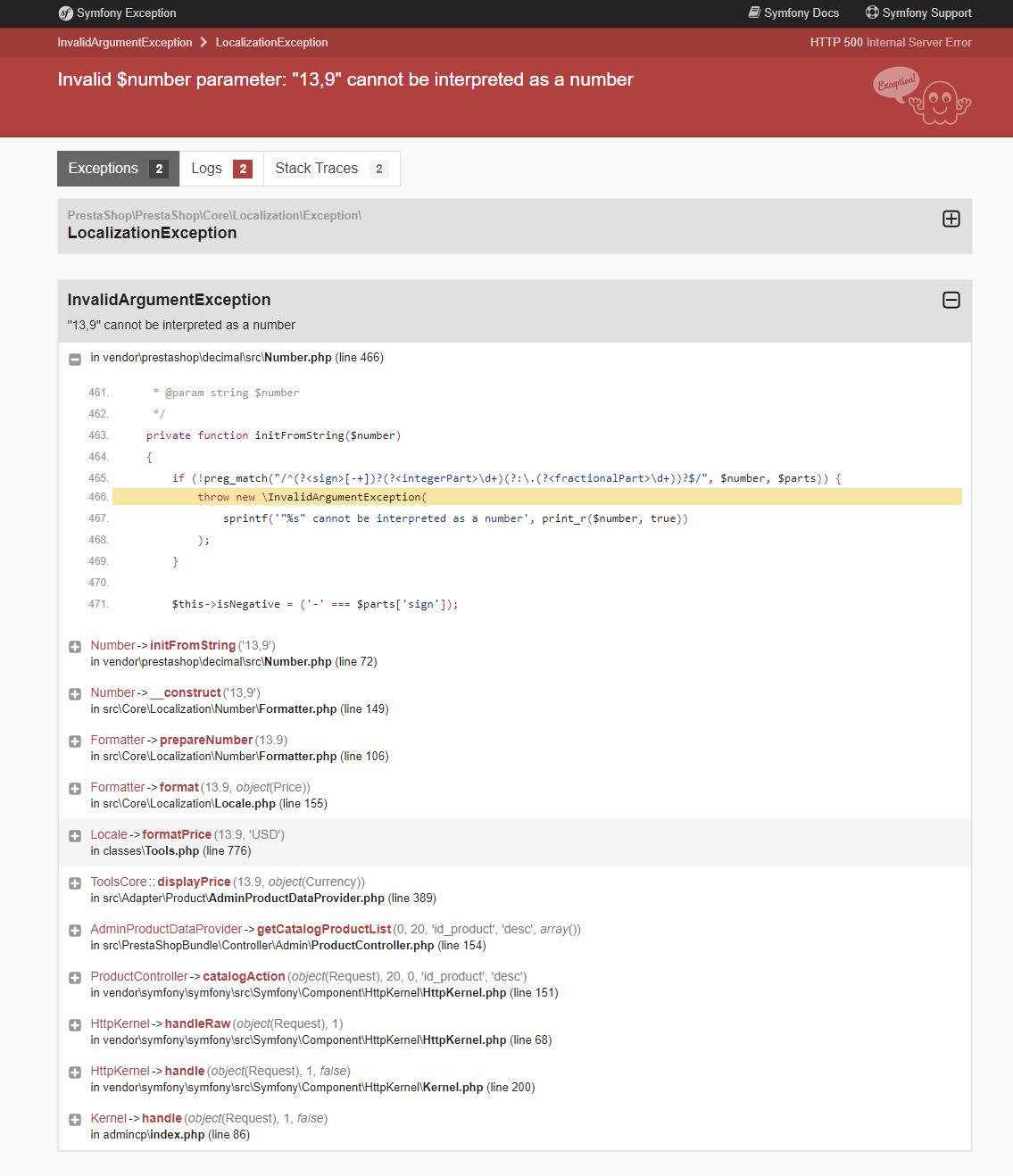 Invalid $number parameter: "32,31" cannot be interpreted as a number