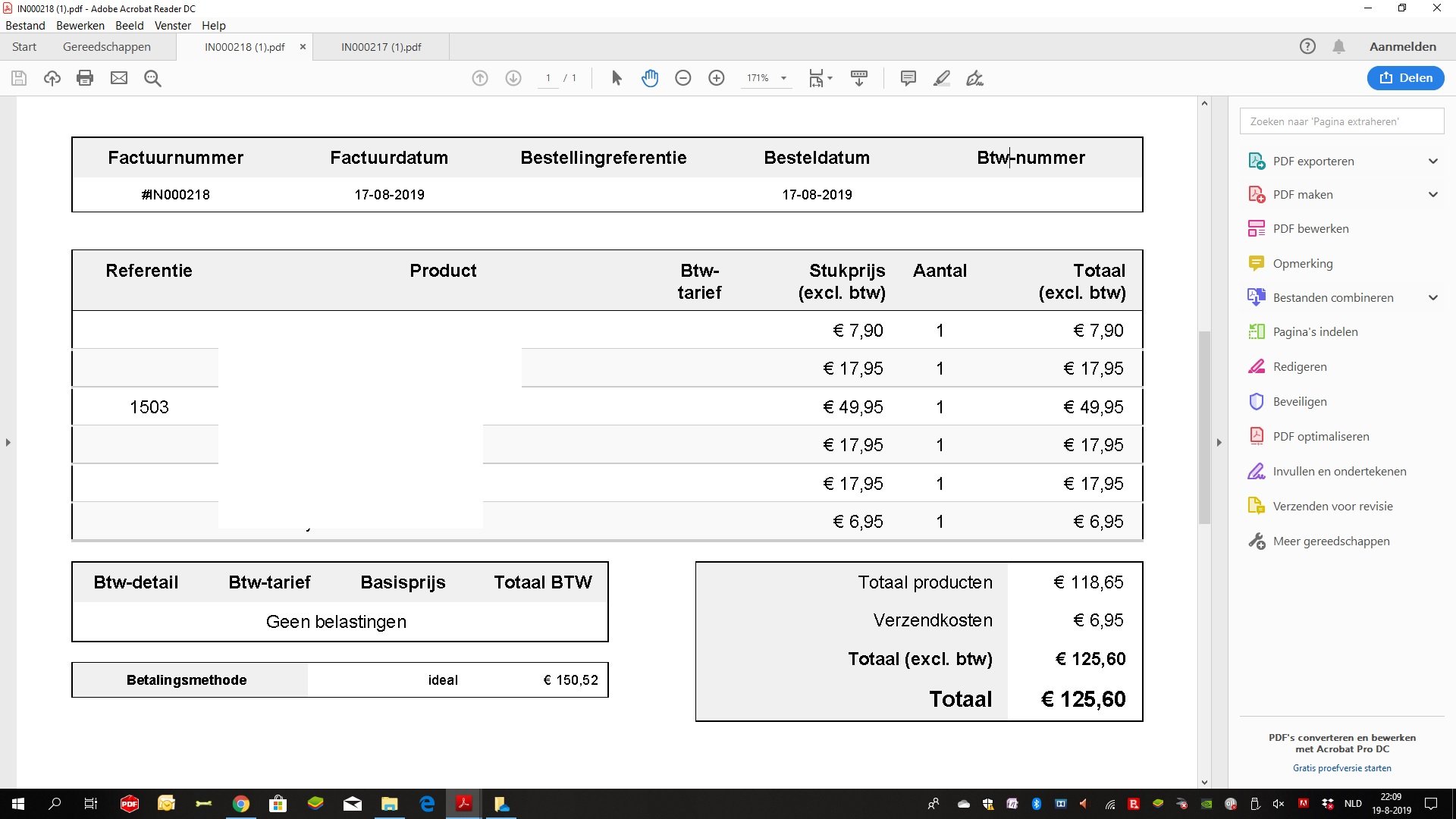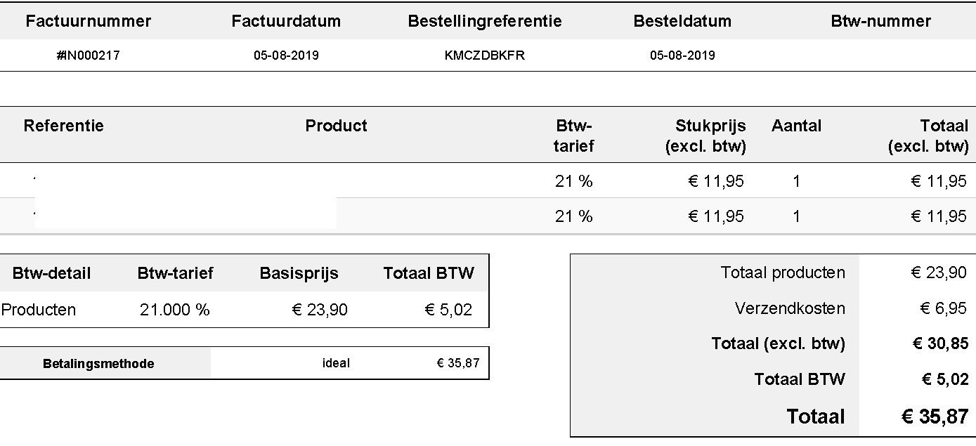 pattysnails Posted August 19, 2019 Share Posted August 19, 2019 (edited) ik heb nog de gratis versie van Prestashop 1.61.4 en nu heb ik sinds 17 augustus een probleem. Normaal gesproken staat het btw bedrag op de factuur, maar nu ineens niet meer zie bijlage: de eerste was van 8 augustus en de 2e van 17 augustus, heel raar. We hebben niets veranderd dus mijn vraag is dit op te lossen? Ik heb nog steeds de gratis versie van Prestashop 1.61.4 en nu heb ik een probleem sinds 17 augustus. Normaal staat het btw-bedrag op de factuur, maar zie nu ineens geen bijlage meer. We hebben niets veranderd, dus mijn vraag is om dit op te lossen? Edited August 19, 2019 by pattysnails (see edit history) Link to comment Share on other sites More sharing options...