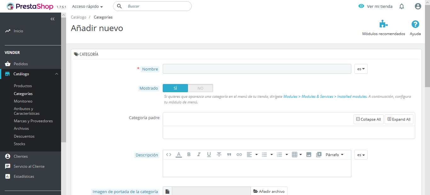Aquí tienes cómo crear categorías:https://victor-rodenas.com/administrar-categorias-en-prestashop-1-7/